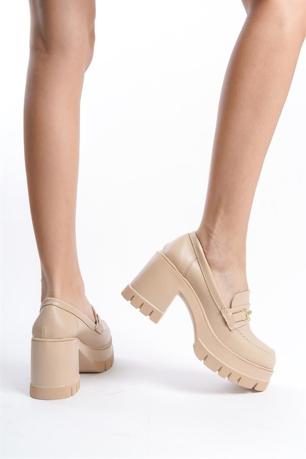 Kadın Alana Krem Cilt oka Detaylı 6 cm Topuklu Lofer Ayakkabı