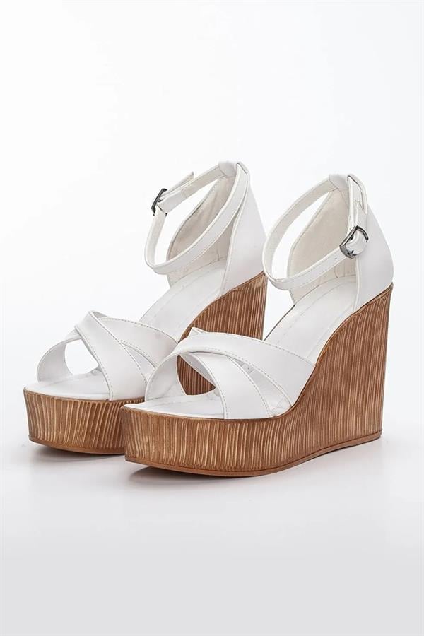 Kadın Verla Çapraz Bant Yüksek Topuklu Dolgu Taban Ayakkabı