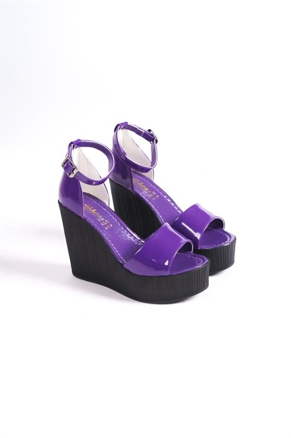 Kadın Verla Mor Rugan Tek Bant Yüksek Dolgu Taban Ayakkabı
