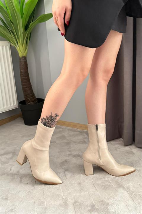 günlük ve özel günler de kullanıma uygun ve tüm kyafatlariniz le kombinleye bilceginiz Streç Malzeme Kalın Topuklu Fantazi Bot .