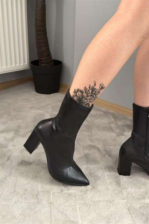 günlük ve özel günler de kullanıma uygun ve tüm kyafatlariniz le kombinleye bilceginiz Streç Malzeme Kalın Topuklu Fantazi Bot .