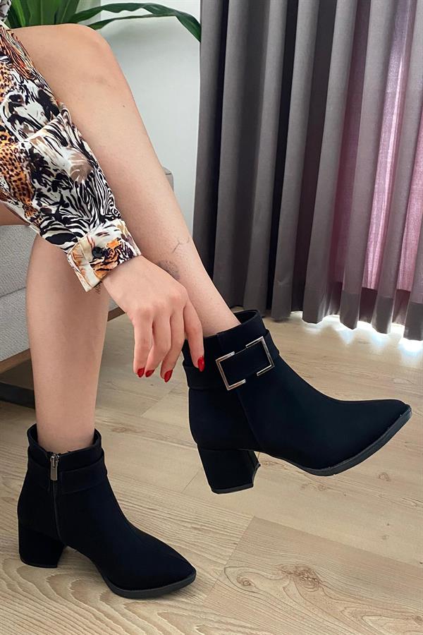 • Ürün Detayı: Yeni Sezon 6 cm Kalın Topuklu Toka Ve Taş Detaylı Bilek Üzeri Sivri Burun Bot