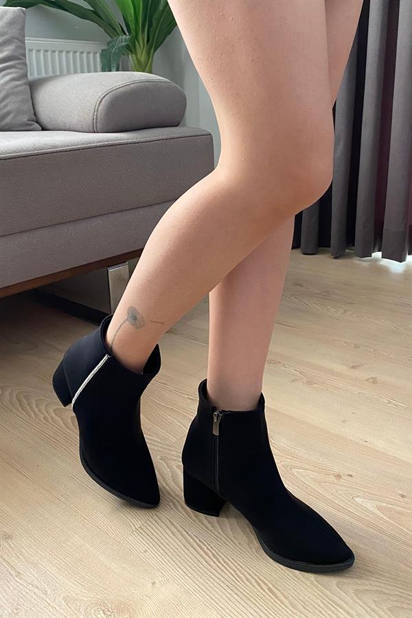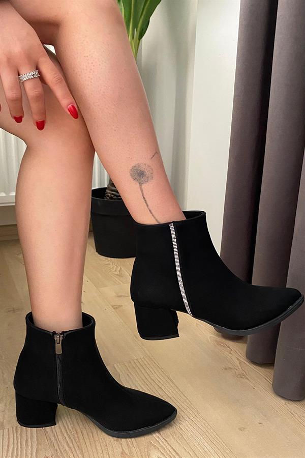 Kadın York Siyah zümrut YAndan Taşlı ( 6 cm ) Topuklu Sivri Burun Bot
