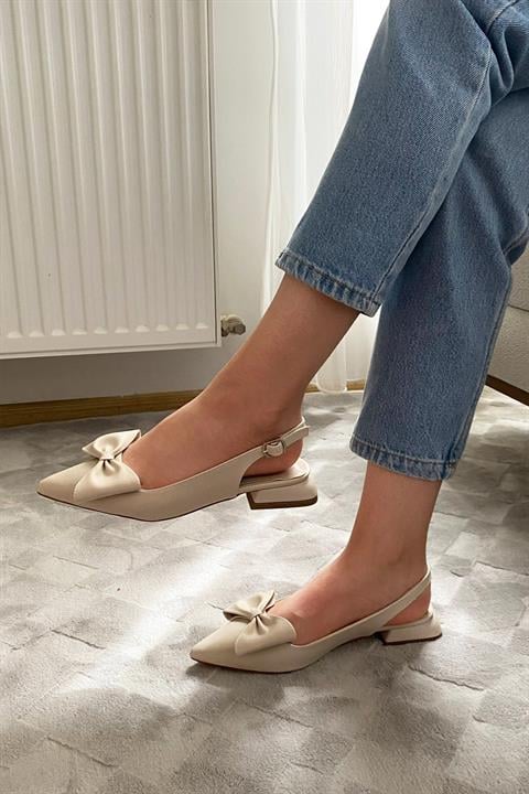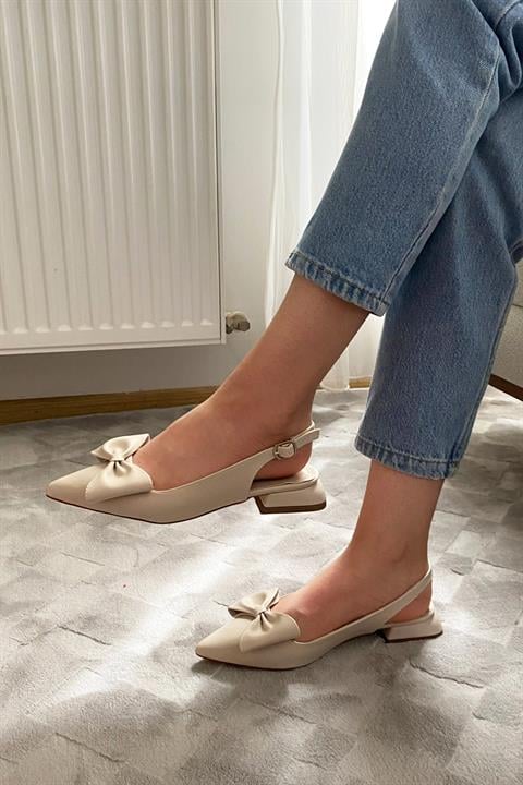 Sista Krem Cilt Fiyoklu Arkası Acık 2 cm Topuklu Sivri Burun Babet