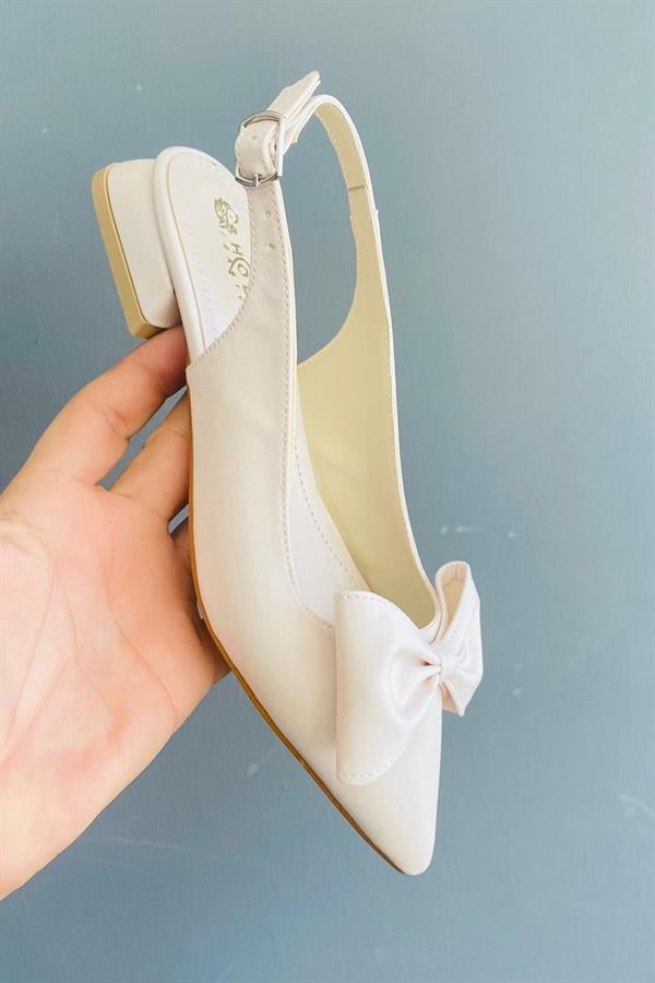 Sista Krem Kumaş Fiyoklu Arkası Acık 2 cm Topuklu Sivri Burun Babet